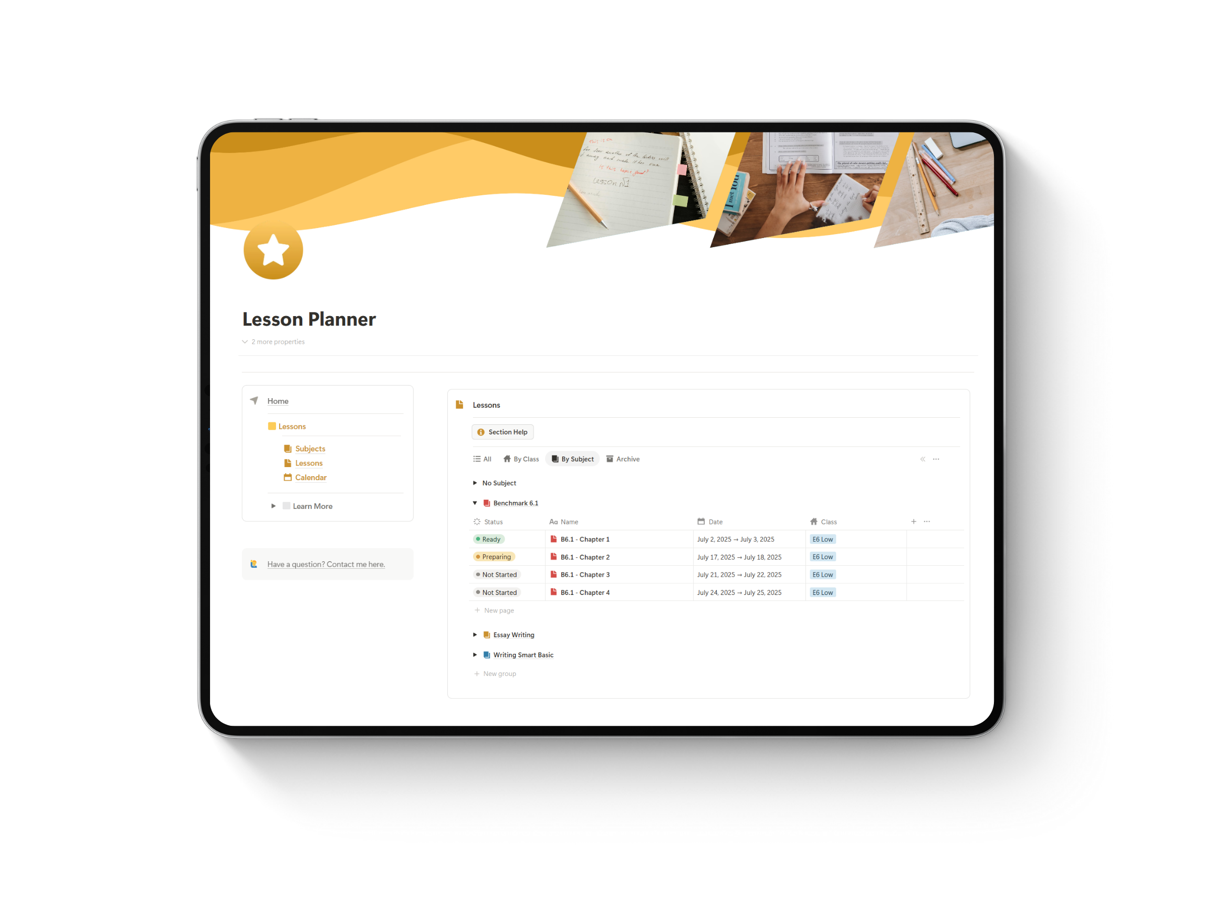 Transform your teaching workflow with The Ultimate Teacher Planner, an all-in-one Notion template designed to help teachers organize lesson plans, manage student data, track grades, and much more—all in one place. What You'll Love: Save Time: Streamline lesson planning and administrative tasks.Boost Productivity: Keep your teaching organized and stress-free with an intuitive, centralized system.Improve Student Tracking: Monitor student performance with integrated attendance and grading tools.Accessible Anywhere: Sync your data across devices, so you can teach and plan on the go. Key Features: Lesson Planning: Organize and schedule lesson plans with templates for consistency.Student Management: Track attendance, grades, and behavior with ease.Task & Project Management: Stay on top of tasks, deadlines, and teaching projects.File & Resource Storage: Easily upload lesson materials and links, keeping everything centralized.Class & Curriculum Organization: Plan classes, map your curriculum, and manage units efficiently.Automated Reporting: Leverage Notion AI for quick student reports based on daily notes. What's Included: Lifetime access & updatesComprehensive video tutorialsInstant access upon purchase Upgrade your teaching experience today with The Ultimate Teacher Planner and simplify your workflow!