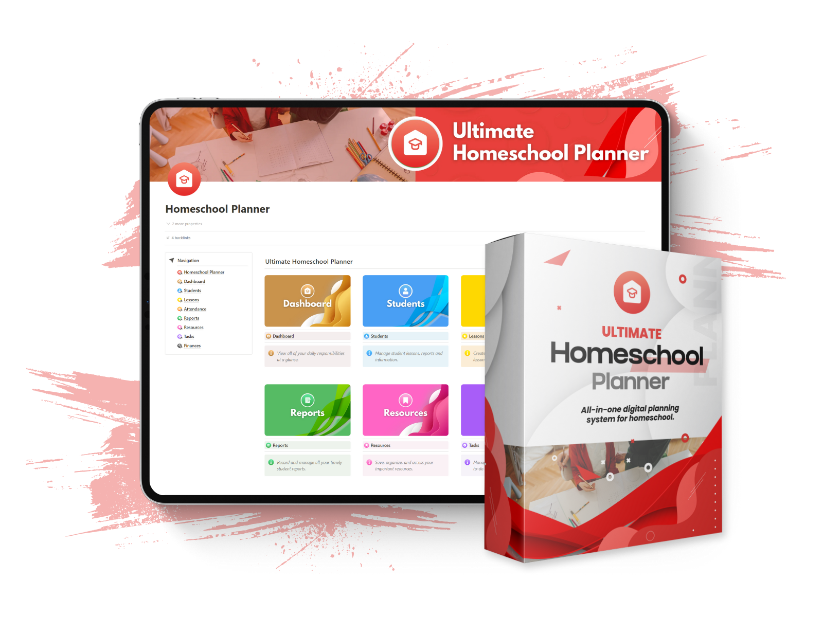 The Ultimate Homeschool Planner is a powerful, all-in-one tool to manage students, lessons, attendance, reports, tasks, resources, and finances. Streamline lesson planning, track progress, and simplify homeschool administration in one organized platform.